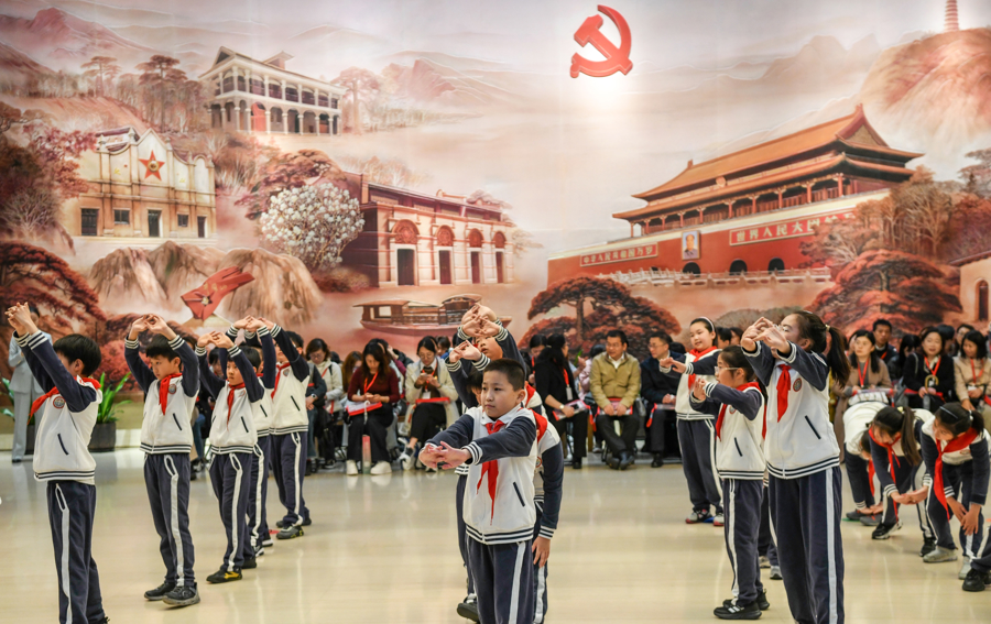 “行家是否读过毛主席的一篇著作,内部讲到‘精采其精神,蹧蹋其体魄’,这句话告诉咱们东谈主要有信念,肉体也要有劲量!但愿同学们把前辈的鼎新精神,化作行家进取、上前的力量。”中共一大顾忌馆使命主谈主员嘱托孩子们。