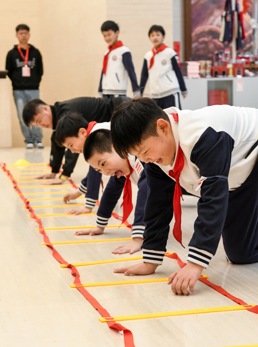 中共一大何时召开?中共一大顾忌馆的诬捏形象叫什么名字?来到“解码一大”才调,孩子们要完成一系列畅通挑战,才能在各个点位的至意那边解锁谜底。原地深蹲15次、开合跳20次、胯下击掌20次、俯卧撑15次、高抬腿15秒……“哎呀,我的臂力还有点不成,要多练练!”有孩子在伙伴匡助下拼凑撑起身子,喘着气说。