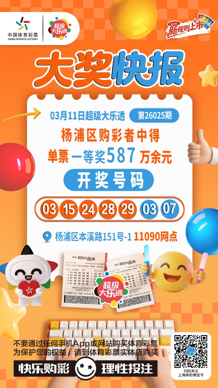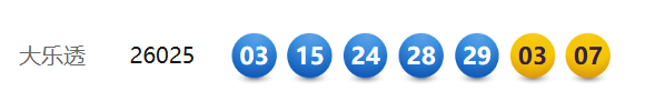 3月11日,超等大乐透第26025期开奖。前区开出号码03、15、24、28、29;后区开出号码03、07。本期寰球销售2.99亿元,为国度筹集彩票公益金1.07亿元。