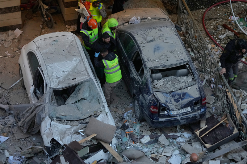 3月11日,在黎巴嫩贝鲁特,安全东谈主员在一栋被以色列空袭损毁的住宅楼内查验情况。 新华社/好意思联
