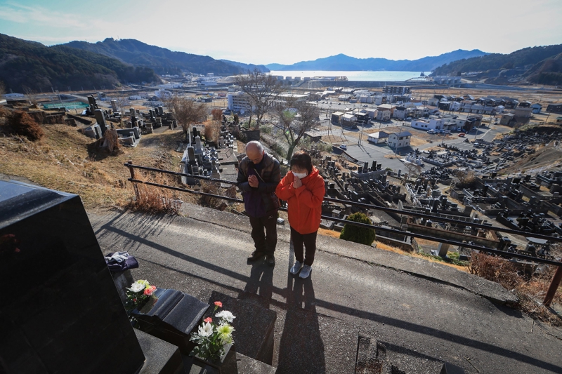 3月11日,在日本岩手县大槌町,一双佳偶是曲在2011年“3·11”东日本地面震和福岛核事故中受难的支属。 新华社/法新