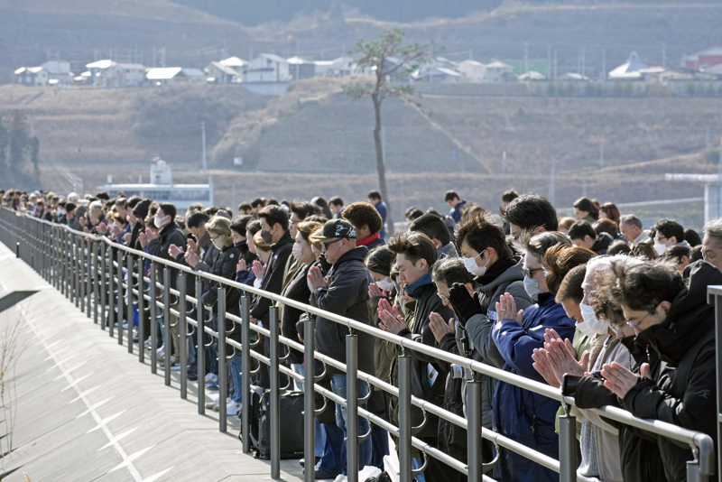 3月11日,在日本岩手县陆前高田,东谈主们在2011年“3·11”东日本地面震发生的时间为受难者致哀。 新华社/好意思联