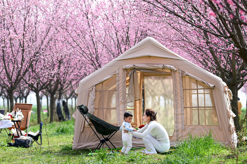 3月11日,游东谈主在西安市鄠邑区甘河街谈丁村梅花培植园内失业。 新华社记者 邹竞一 摄