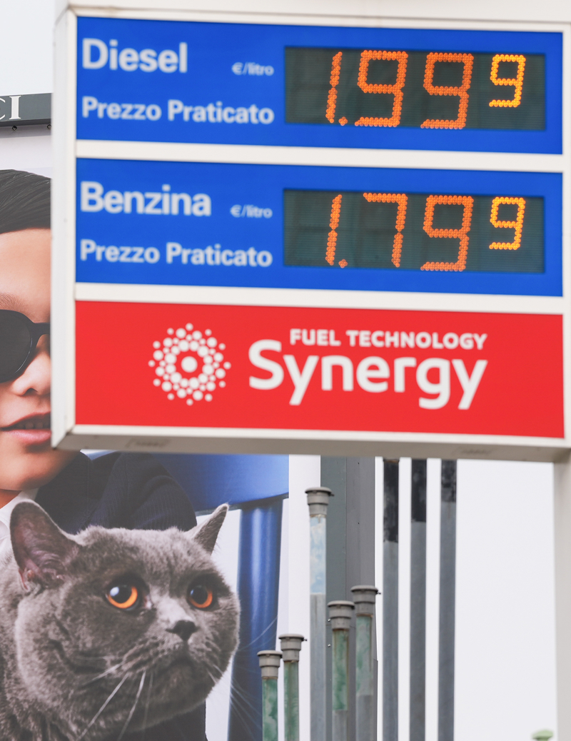 这是3月11日介意大利米兰市中心拍摄的一家加油站的油价牌。 新华社记者 李京 摄